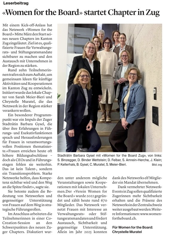 In der Übersicht der Frauenclubs in der Schweiz ist auch Women for the Board erwähnt.